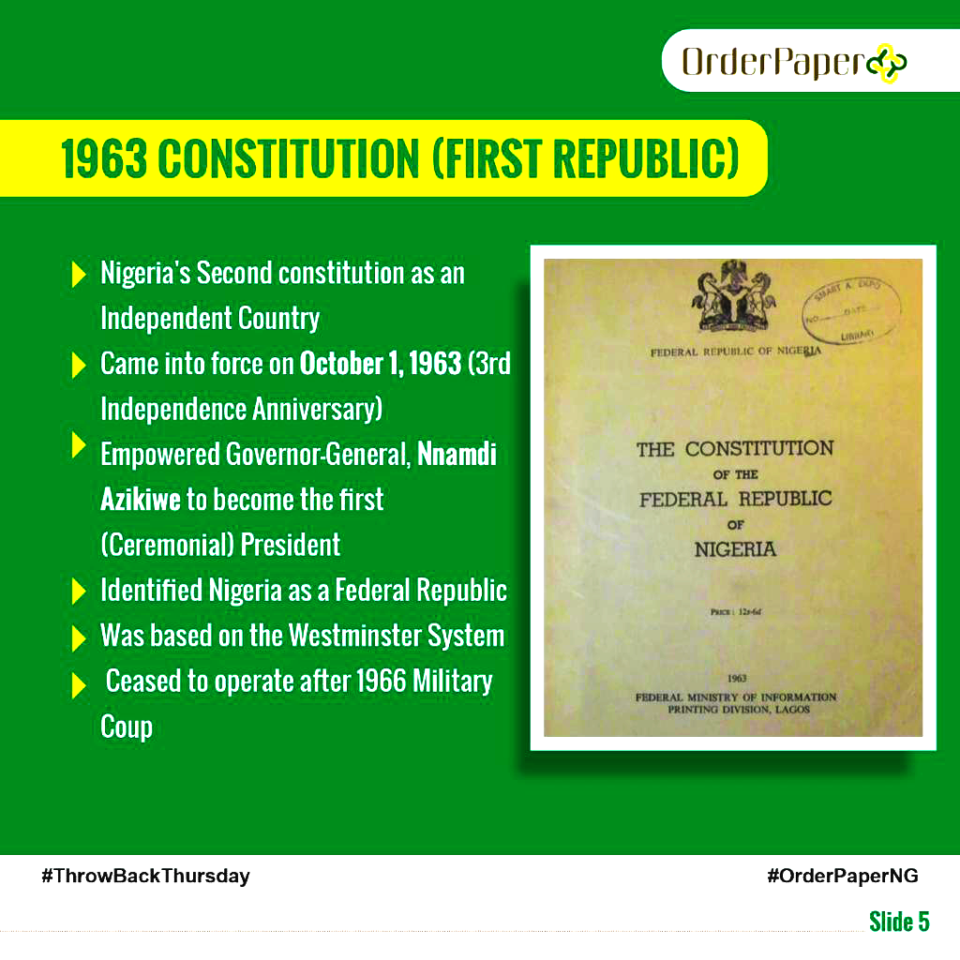 - The Nigerian 1999 constitution is believed to be severely flawed and was cunningly hatched