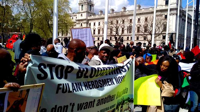 LONDON- Nigerians in the UK protested not too long ago at the entrance of the Nigerian Embassy in London, as frustrations continue to mount on the existencial threat posed by terrorist Fulanis on the Nigerian soil, a culturally arabised settler foreign Black tribe