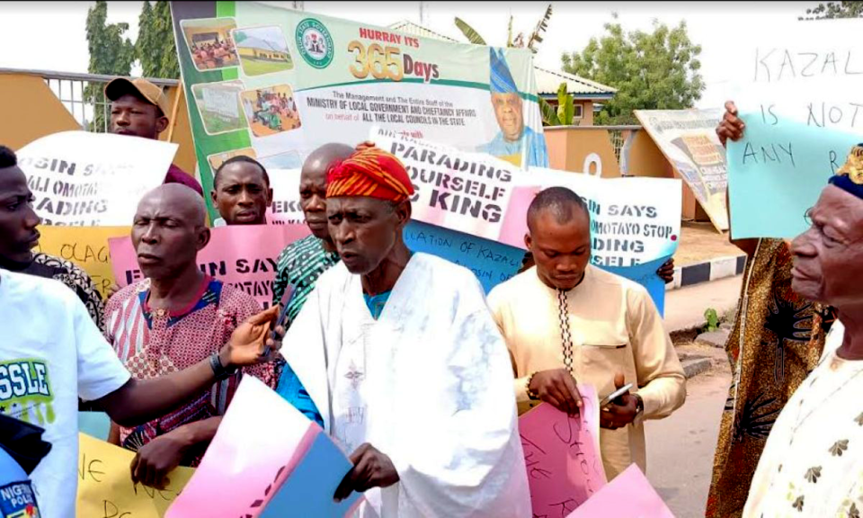 Members of the community who witnessed the incident revealed that they woke up to the protest over the presentation of the staff of office to Kasali Olagunju as the new Akosin of Ekosin by the Osun State Government some days ago. It was also reported Friday, that ruling houses in the town led by the Nyanbilolu Royal Family protested the alleged imposition of Kasali Olagunju as Akosin of Ekosin.