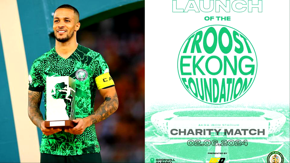 Super Eagles captain Troost Ekong is set to officially launch his foundation with a fund-raising charity match slated for June 2 at the Godswill Akpabio stadium in Uyo, Akwa Ibom State